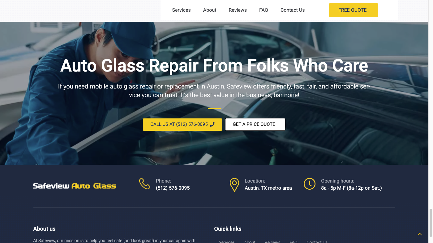 Mike Hayne, the owner of Safeview Auto Glass, approached me after selling his previous auto glass repair business to start a new mobile auto glass company. He needed to create a new brand, a website tailored to attract and convert mobile users, and establish a strong online presence with Google Business, Yelp profile, and a Facebook page.