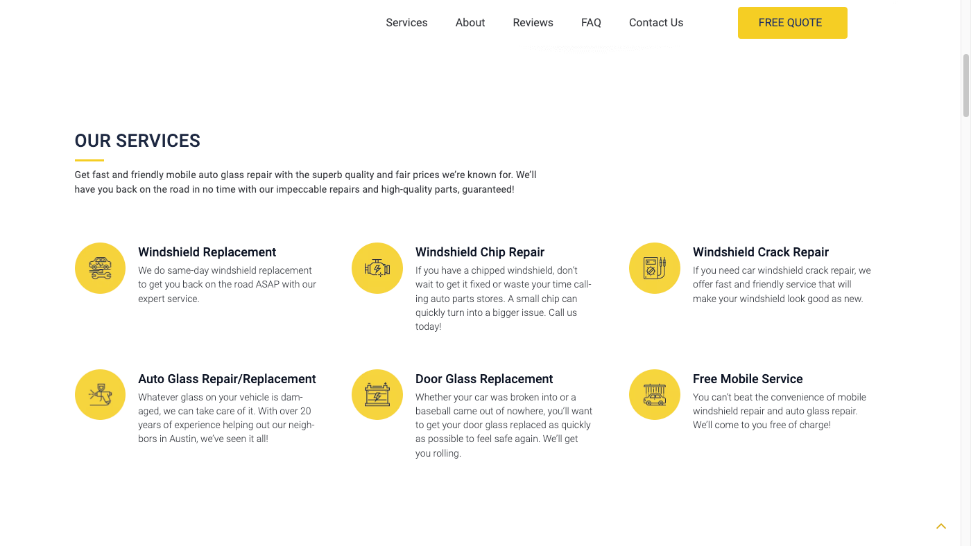 Fast growth for a mobile auto glass business through branding, user-friendly website design, and strategic online presence, resulting in stellar reviews and to-capacity booking.
